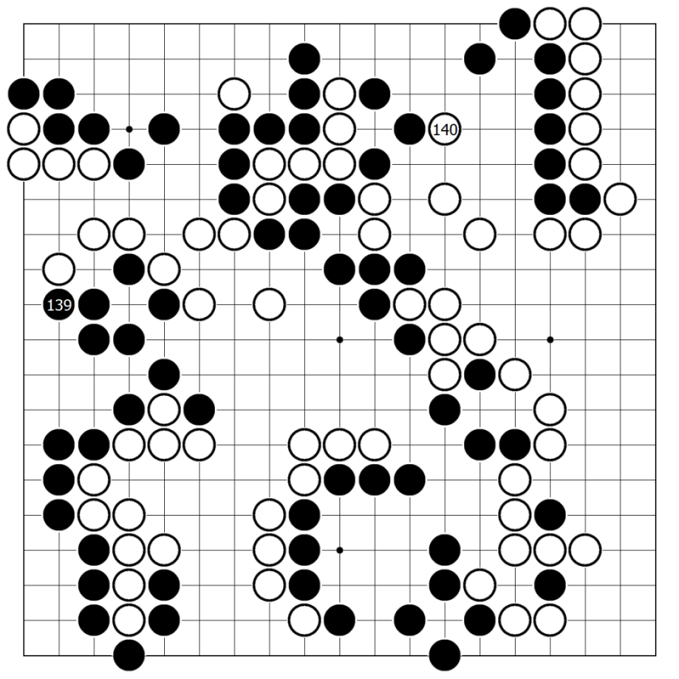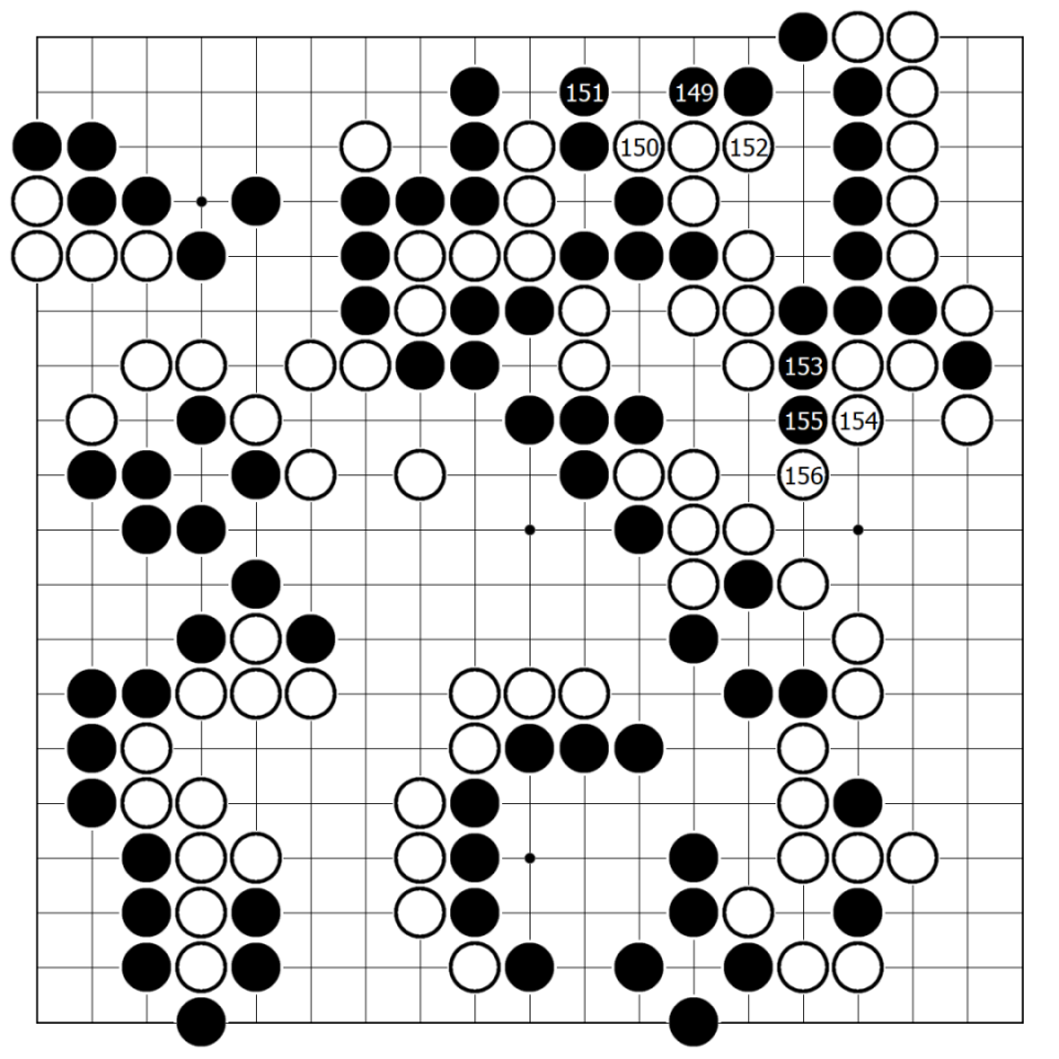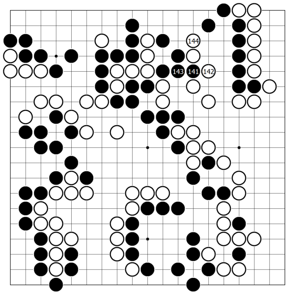 黑棋挖反击当然,是败招,却非败因。诚然黑141下完这棋确实要输了,但罪责恐怕还是漏算了白144。